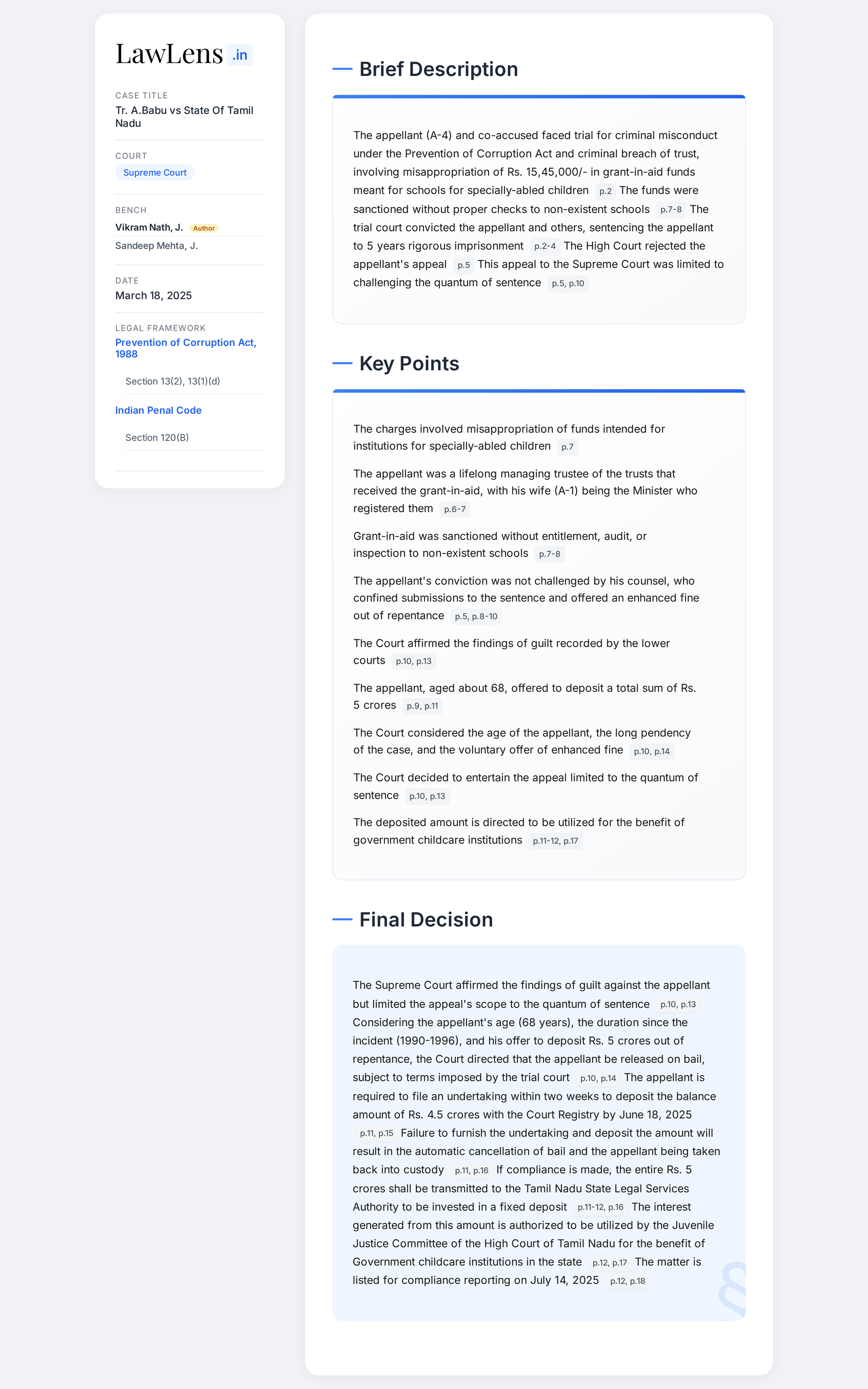 Tr. A. Babu vs State Of Tamil Nadu 2025 INSC 799 - Bail