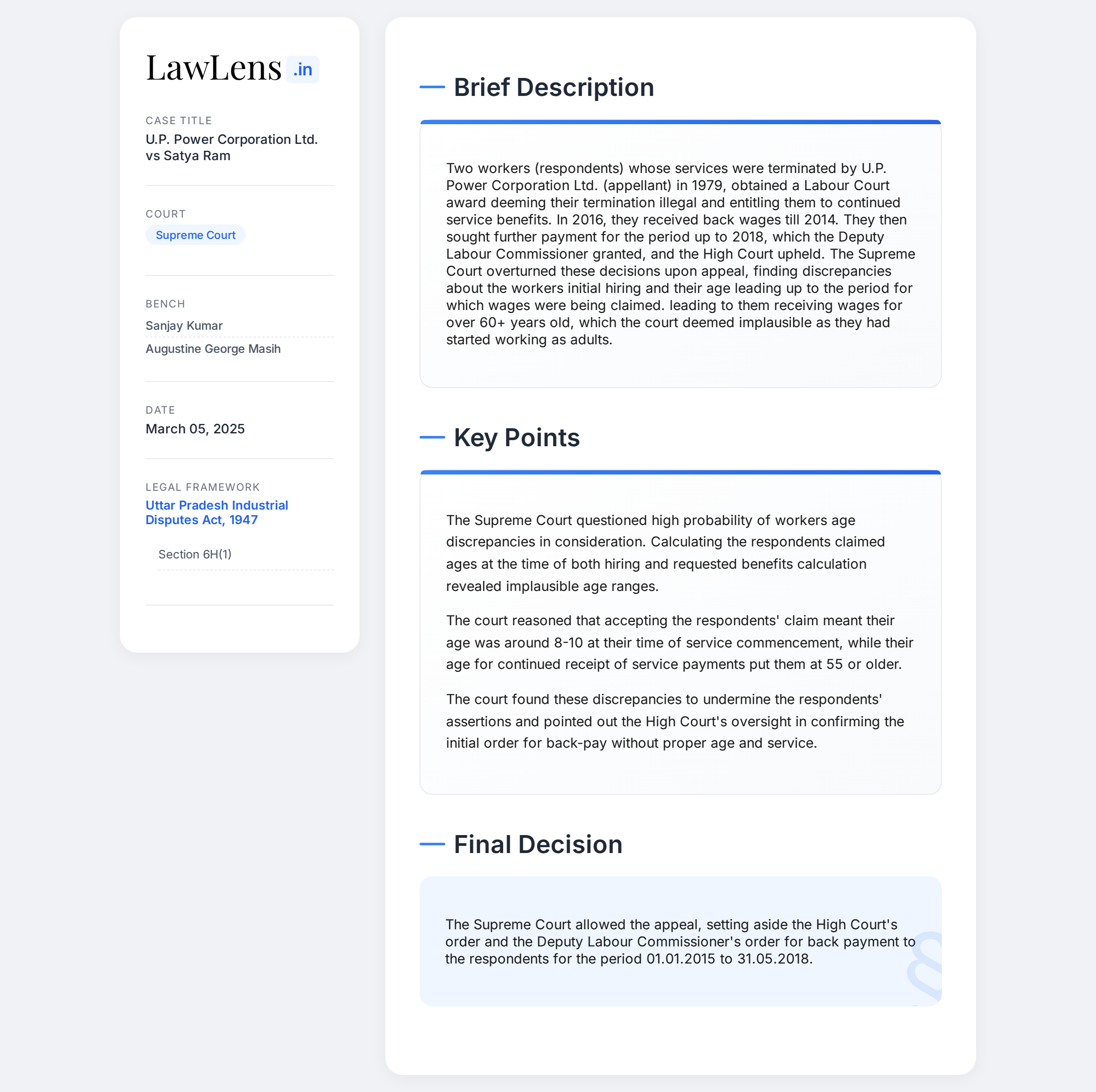 U.P. Power Corporation Ltd. Vs Satya Ram 2025 INSC 339
