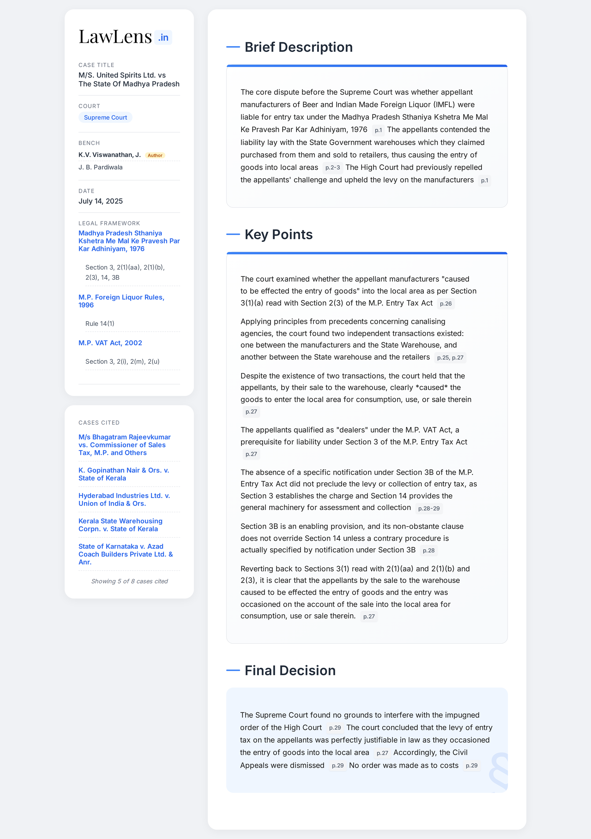 United Spirits Ltd. vs. State of Madhya Pradesh 2025 INSC 833 - M.P. Entry Tax Act