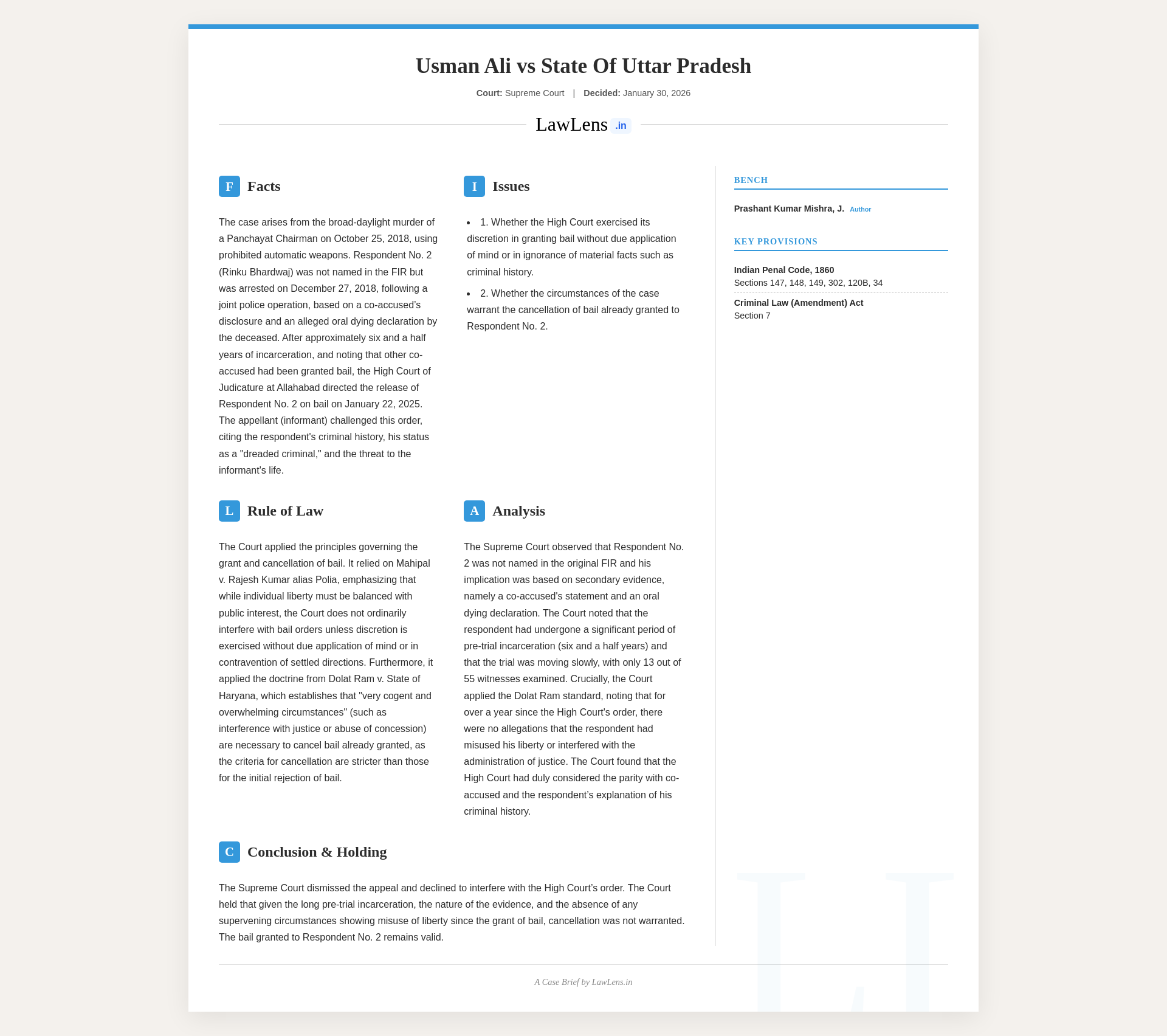 Usman Ali v. State of Uttar Pradesh 2026 INSC 98 - Cancellation of Bail