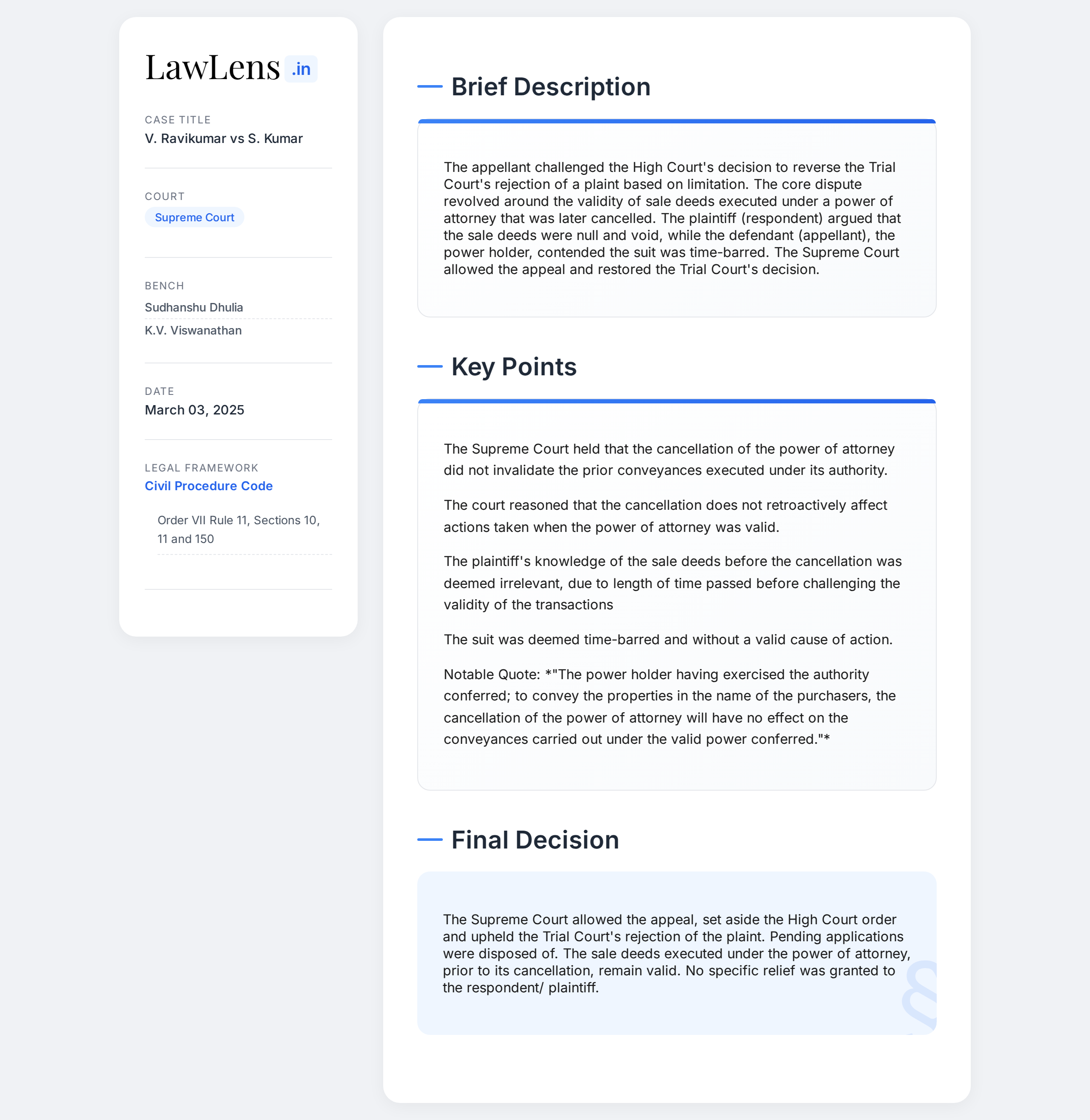 V. Ravikumar vs S. Kumar 2025 INSC 343 - Power Of Attorney Cancellation