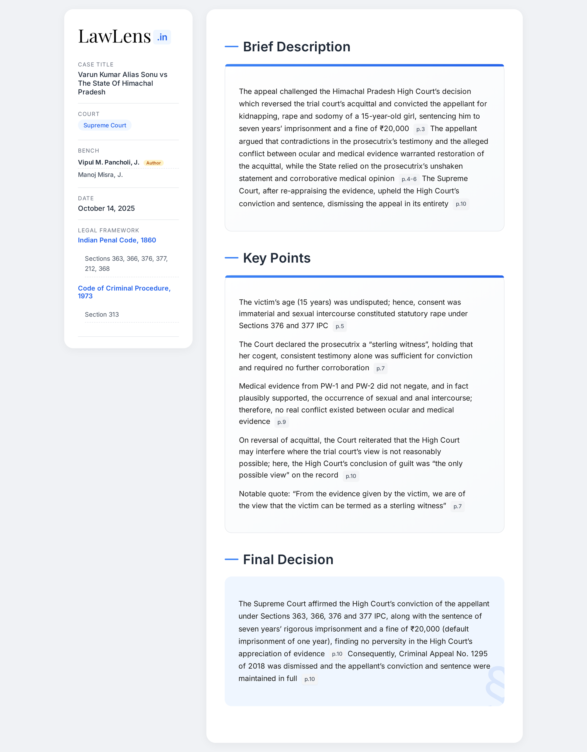 - Case name: Varun Kumar Alias Sonu v. State of Himachal Pradesh & Ors.