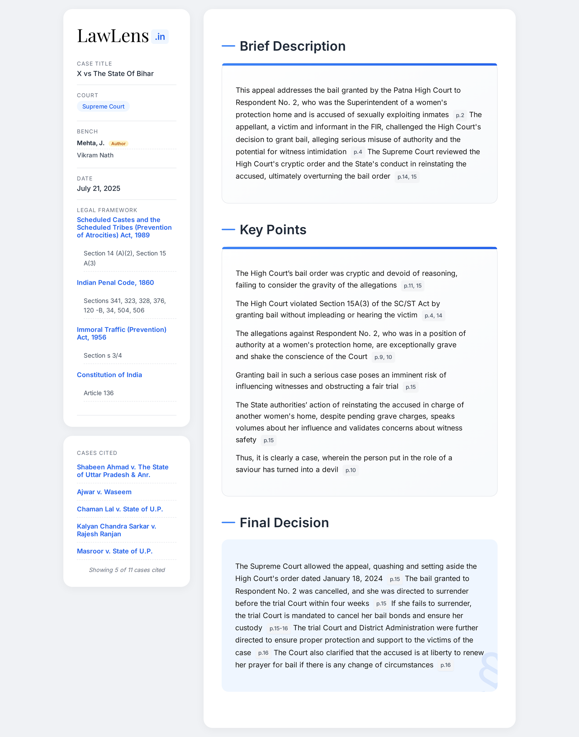 Victim ‘X’ vs State Of Bihar 2025 INSC 877 - Cancellation of Bail -