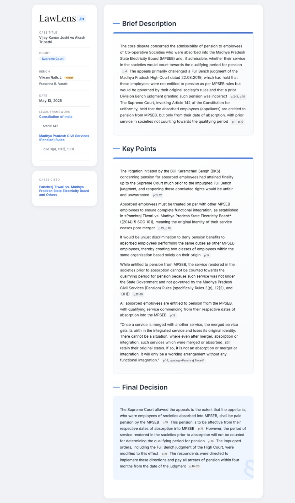 Vijay Kumar Joshi vs Akash Tripathi 2025 INSC 670 - Service - Absorption