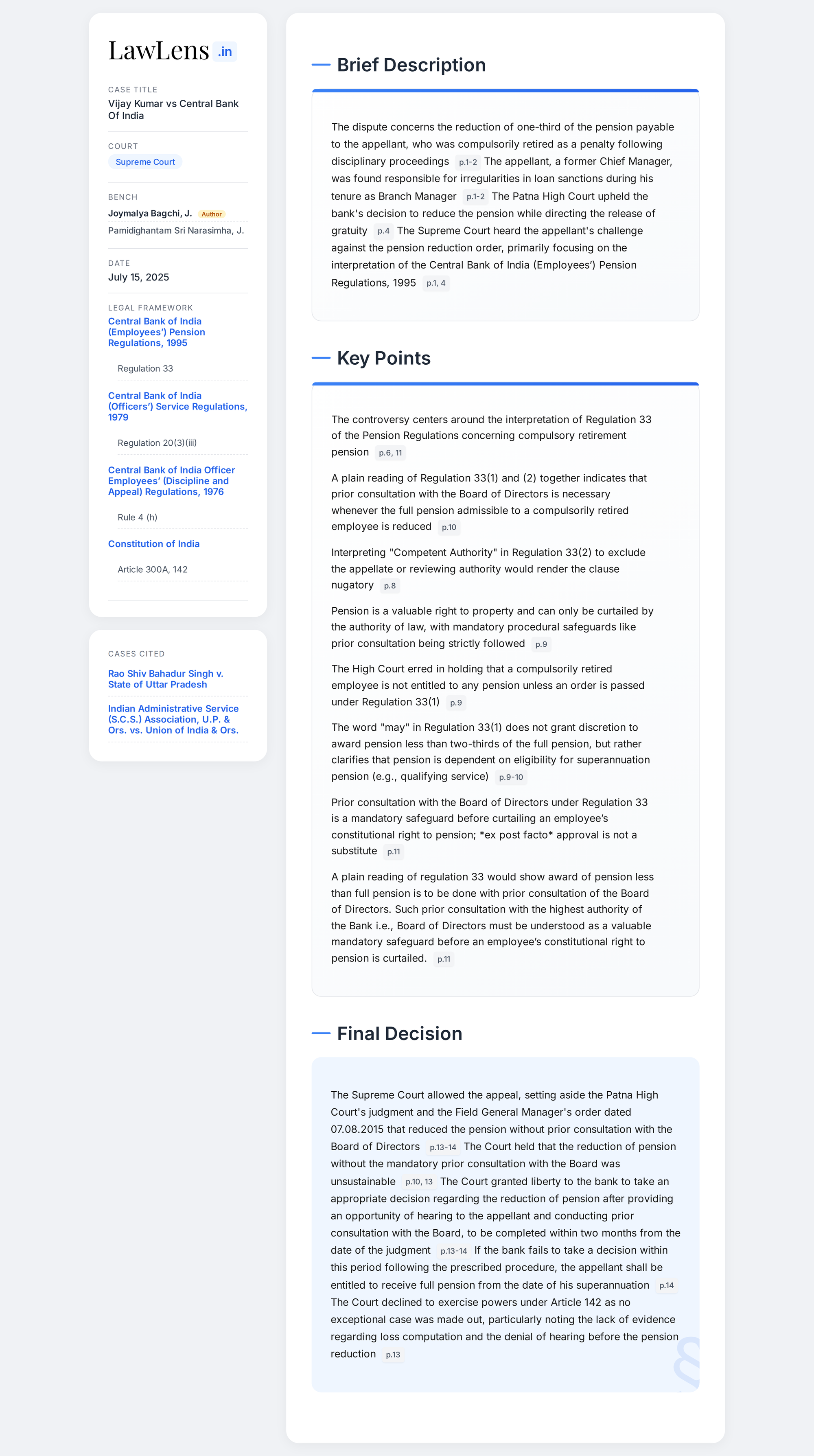 Vijay Kumar vs. Central Bank of India 2025 INSC 848 - Pension Regulations - Central Bank Regulations