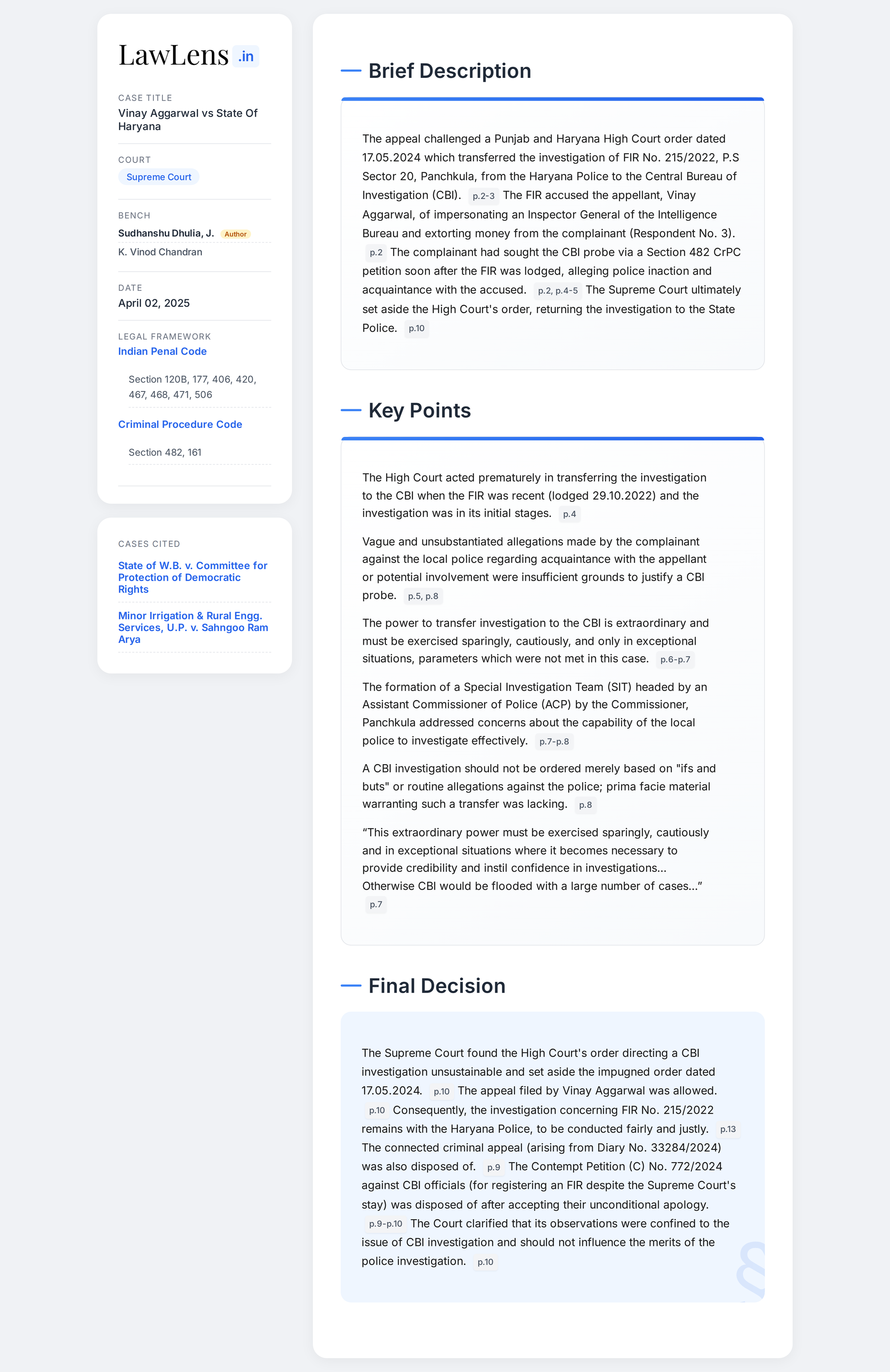 Vinay Aggarwal vs State Of Haryana 2025 INSC 433 - CBI Investigation