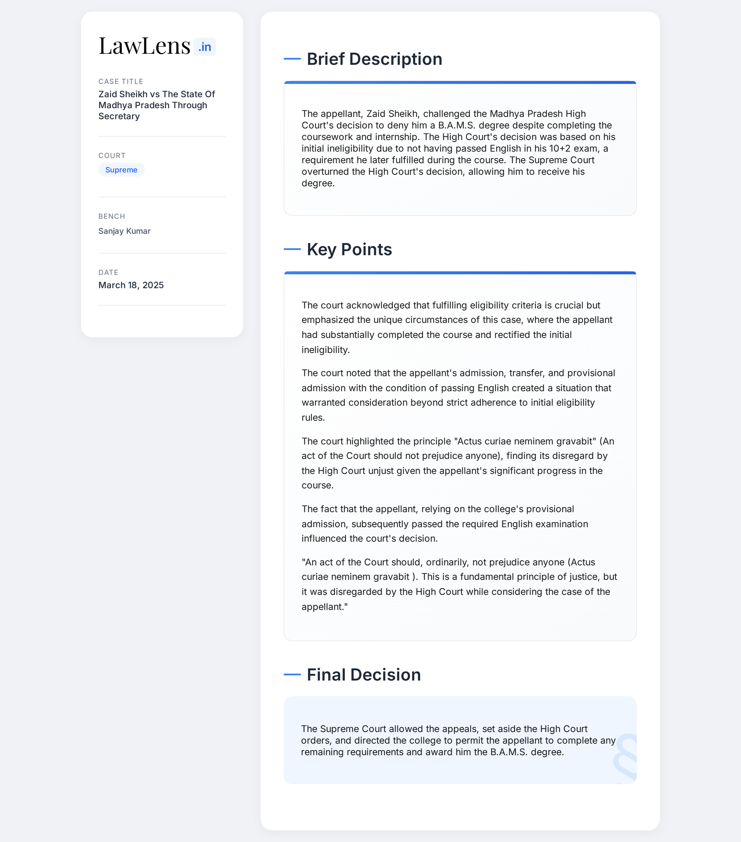 Zaid Sheikh Vs State Of Madhya Pradesh 2025 INSC 353 - Actus Curiae Neminem Gravabit